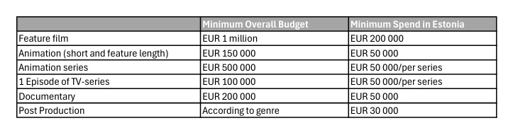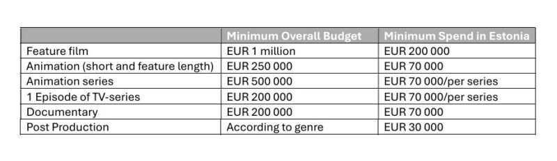 The Film Estonia production incentive is open for: